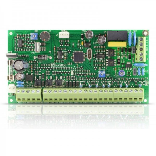 Centrale 8 zones extensible à 16 par doublage des zones ou carte d'extension 4 secteurs plus total, 3 sorties programmable extensible à 16, 31 utilisateurs plus installateur, maximum 15 clavier/module, 16 programme horaire, mémoire de 512 évènement. Transmetteur PSTN intègrer télégestable à distance avec guide vocale plus report d'alarme au serveur web ALARMSERVER.